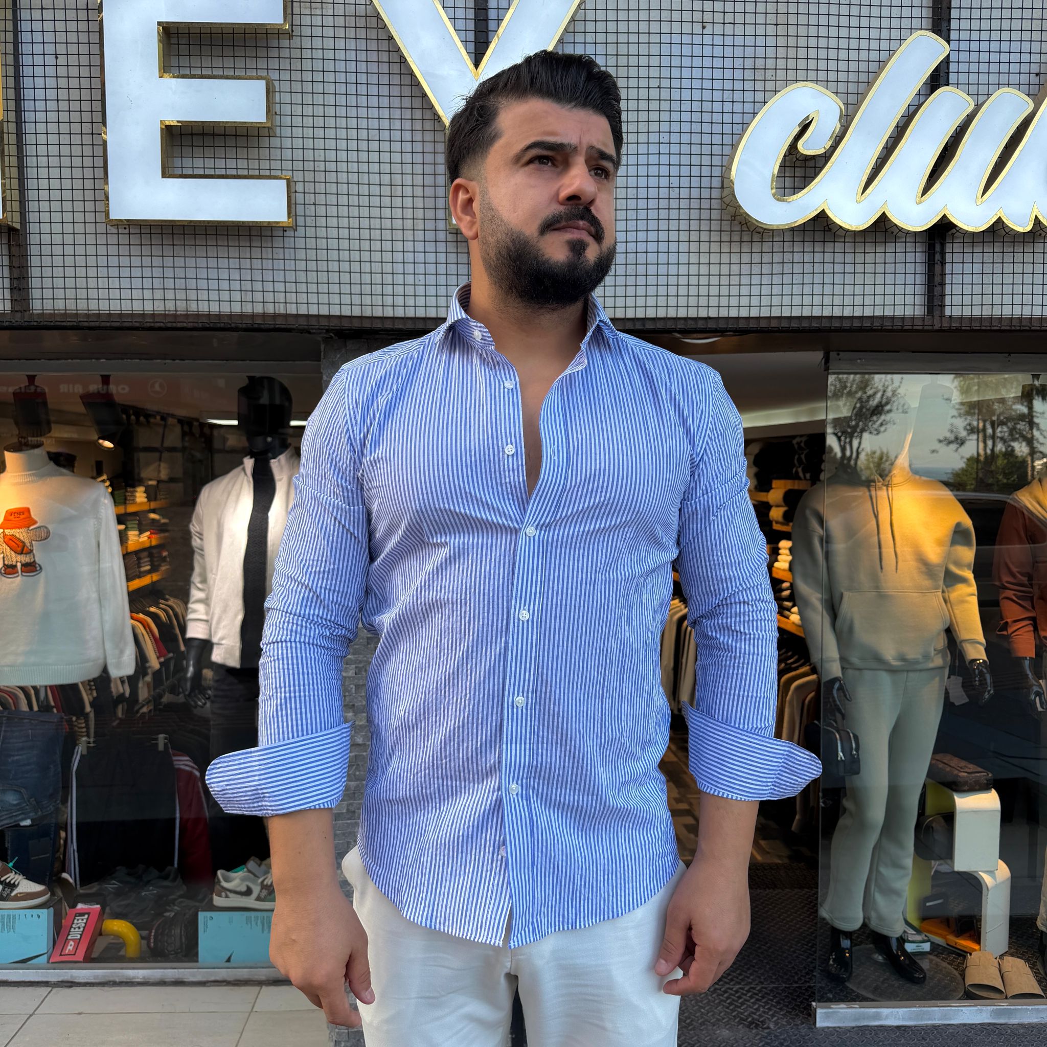 Zamansız şıklığın sembolü olan çizgili gömlek, modern kesimi ve kaliteli kumaşıyla her ortama uyum sağlar. Nefes alan dokusu sayesinde gün boyu rahatlık sunar.