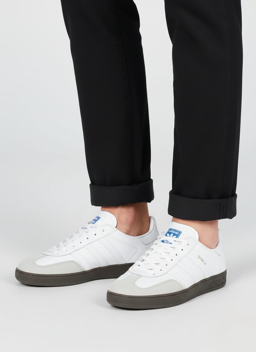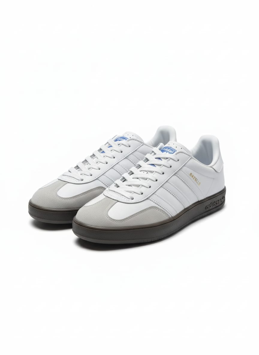 Sadelikten vazgeçmeyenler için tasarlanan bu beyaz retro sneaker, ton sür ton (beyaz üzerine beyaz) şerit detaylarıyla fark yaratıyor. Ön kısmındaki gri süet koruyucu ve koyu bal rengi (gum) tabanı, bu minimalist tasarımı tamamlayan en şık detaylar.