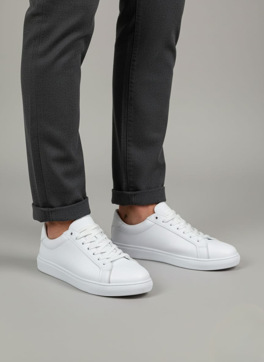 Sadeliğin en şık hali. Tamamen beyaz ve logosuz tasarımıyla bu sneaker, gardırobunuzun en kullanışlı parçası olacak. İster ofiste kumaş pantolonla, ister hafta sonu kot pantolonla giyin; her zaman temiz ve özenli görünün.