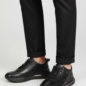 Konfor ve prestiji bir arada sunan siyah deri sneaker, minimalist tasarımıyla stilinize güç katar. Yan yüzeyindeki derin kabartma yazı detayı ve modern taban yapısı, ayakkabıyı sıradan bir spor modelden çıkarıp lüks bir aksesuara dönüştürüyor.