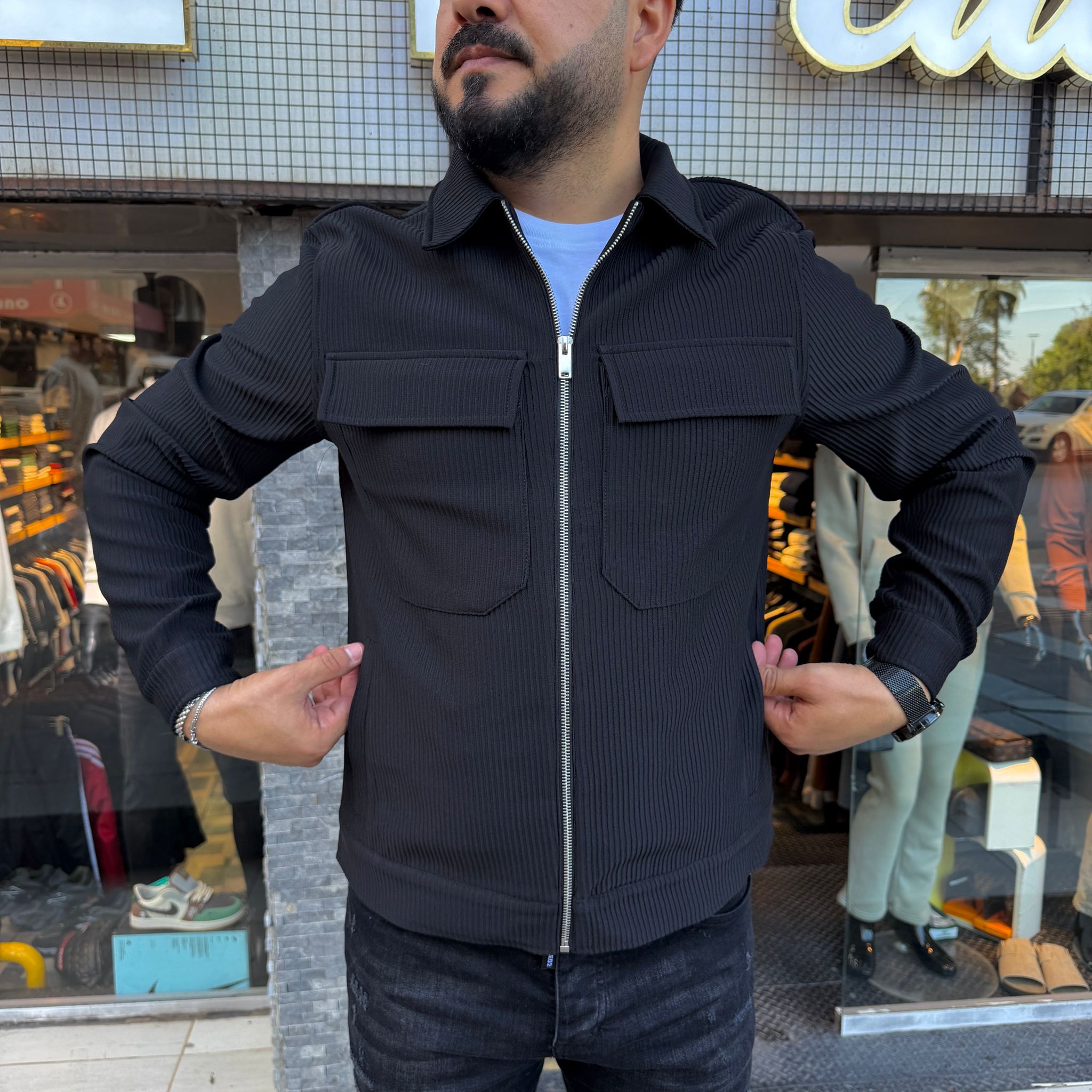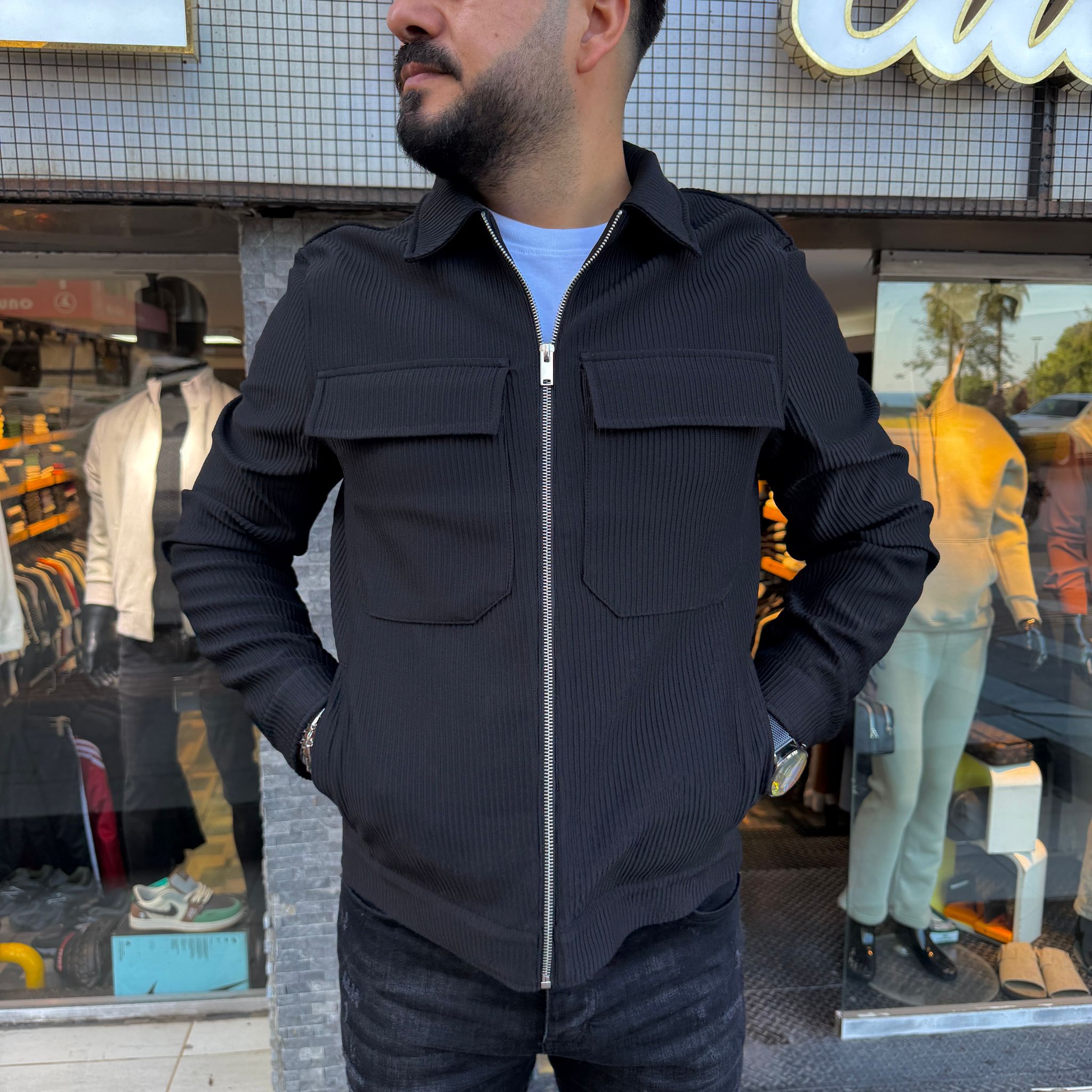 Zarif ve sade tasarımıyla dikkat çeken siyah ince ceket, mevsim geçişlerinde şıklığı ve konforu bir arada sunar. Hafif yapısı sayesinde gün boyu rahat kullanım sağlar ve nefes alabilen kumaşı ile terletmeden ideal bir dış giyim seçeneği oluşturur.