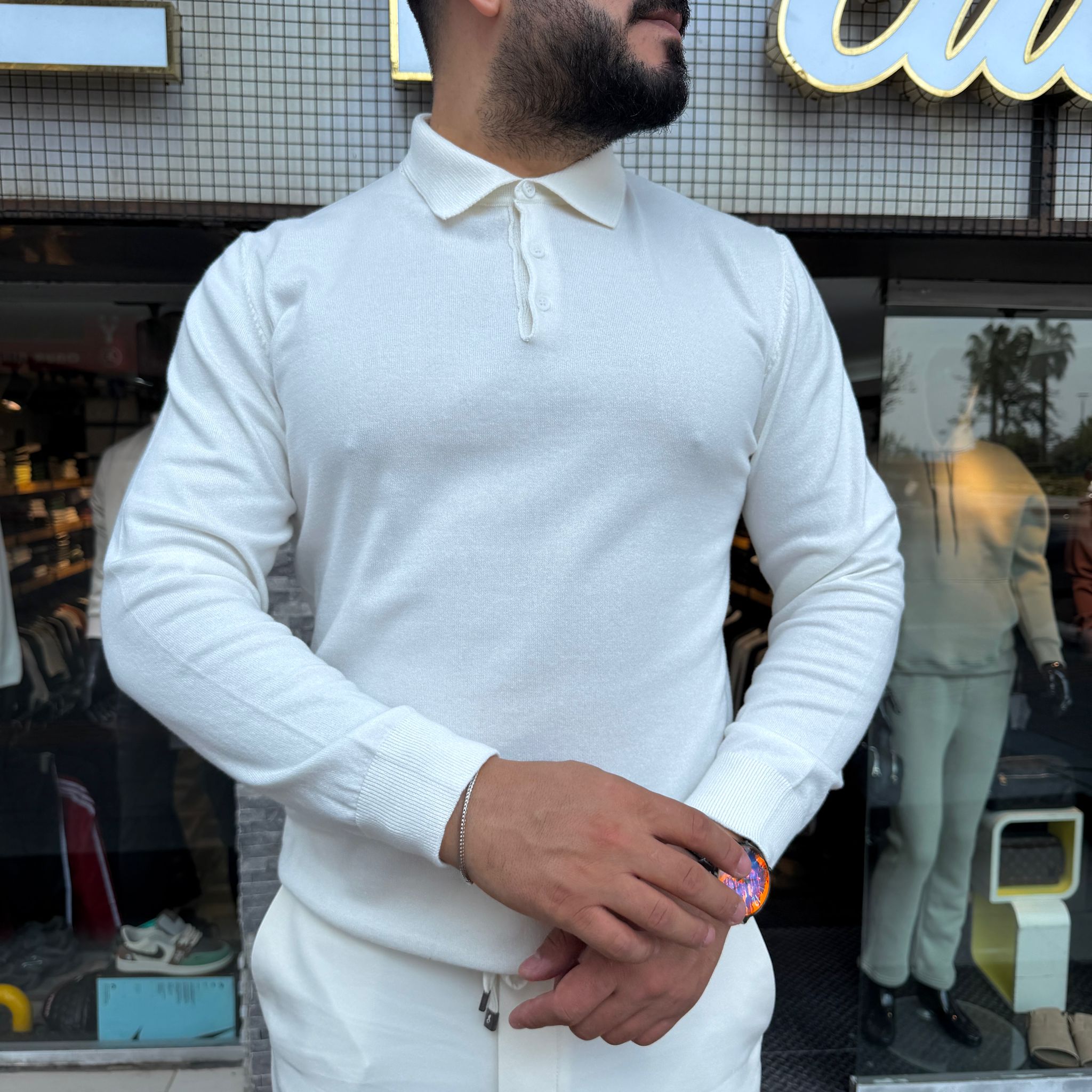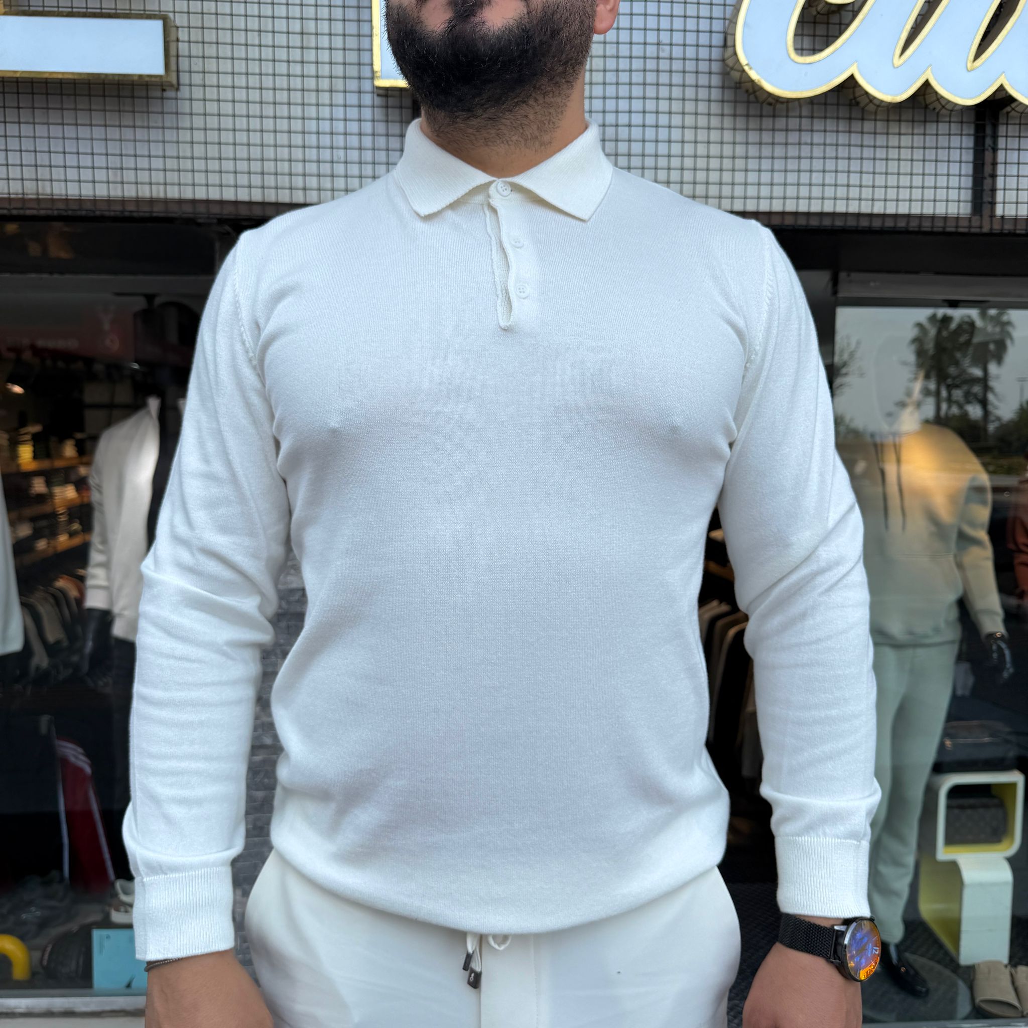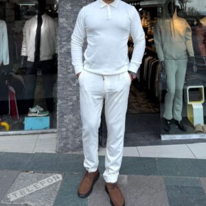 Polo Yaka Sweat Beyaz