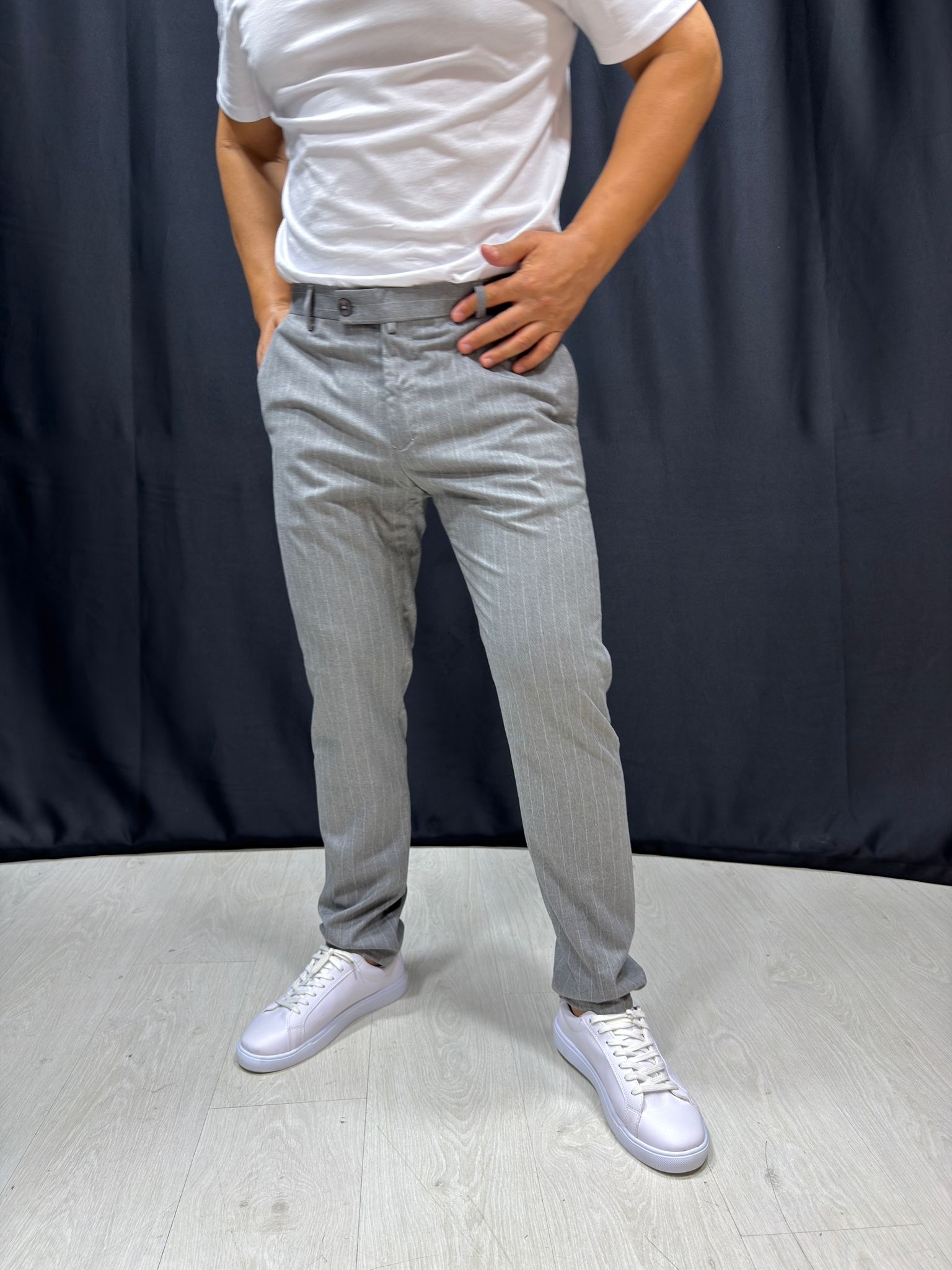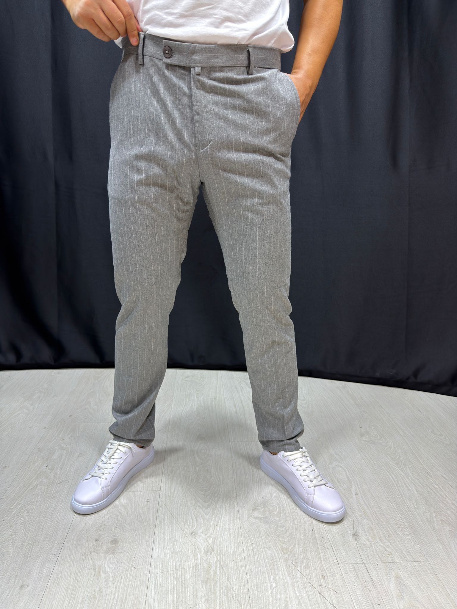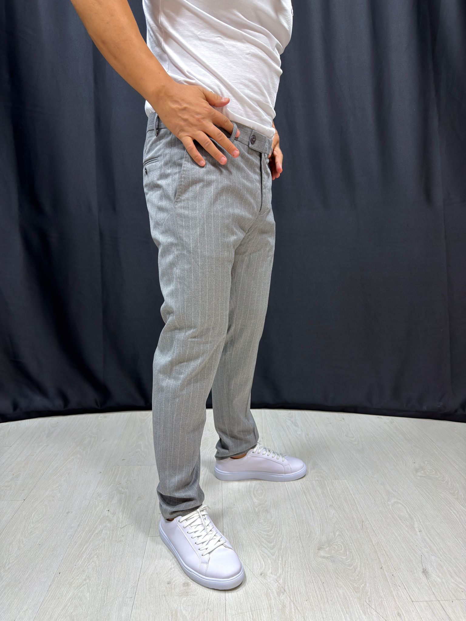 Score Beyaz Çizgi Detaylı Gri Pantolon