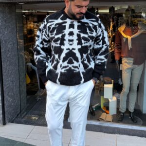 Sıfır Yaka Yünlü Kazak Çift Renk